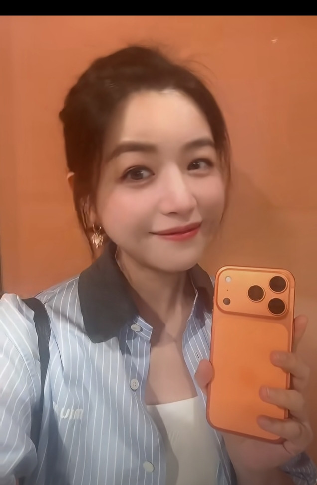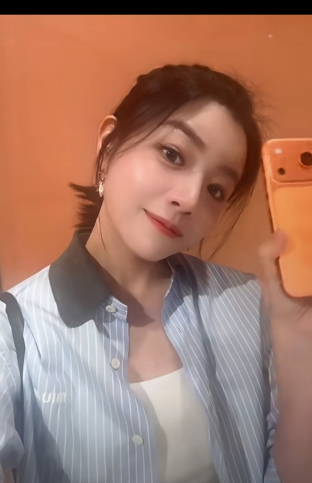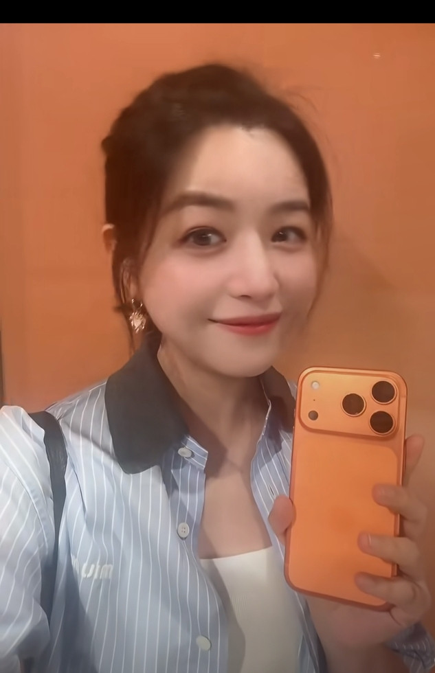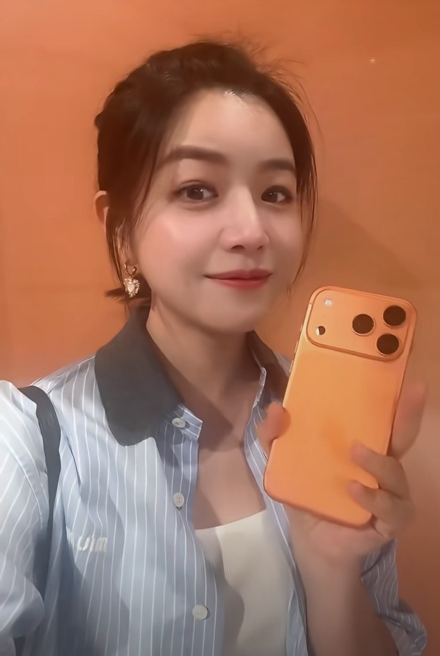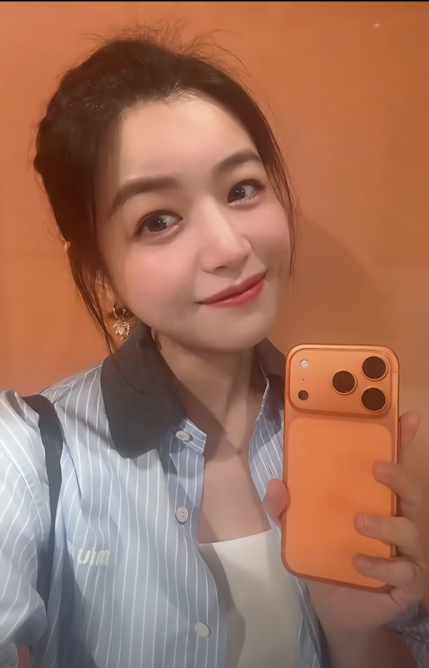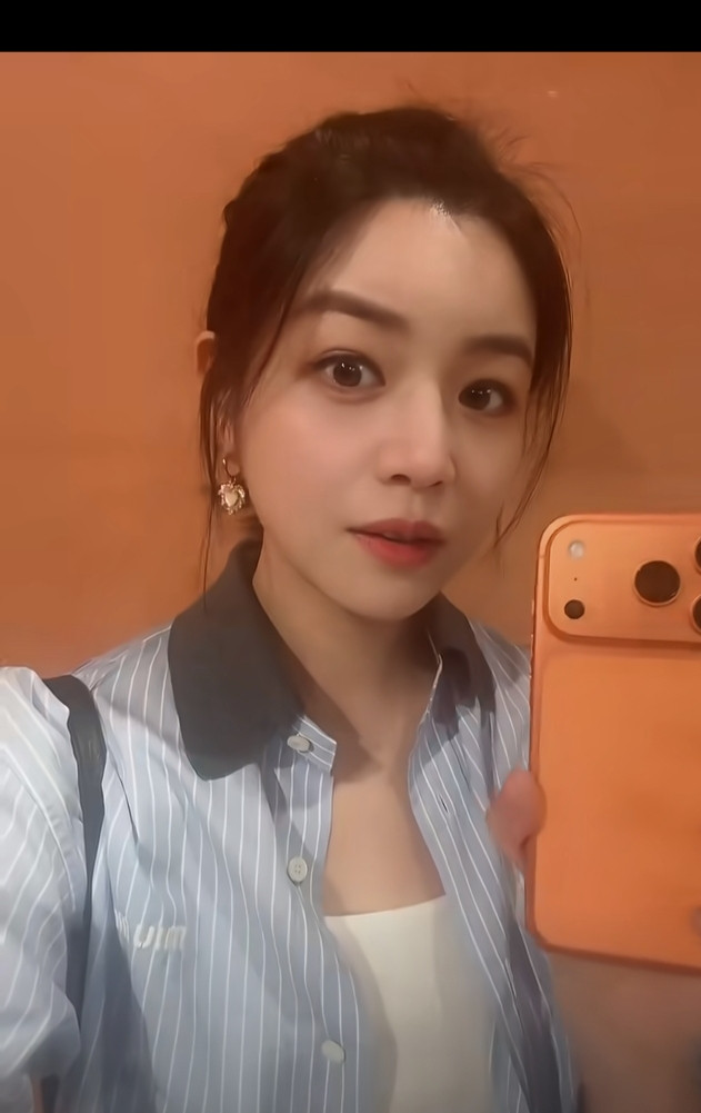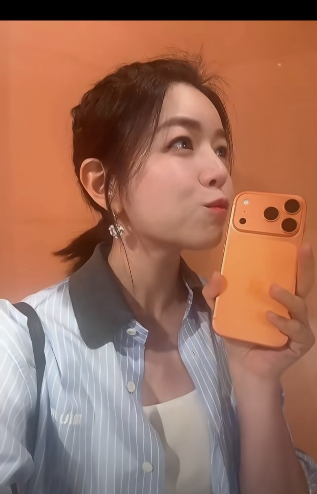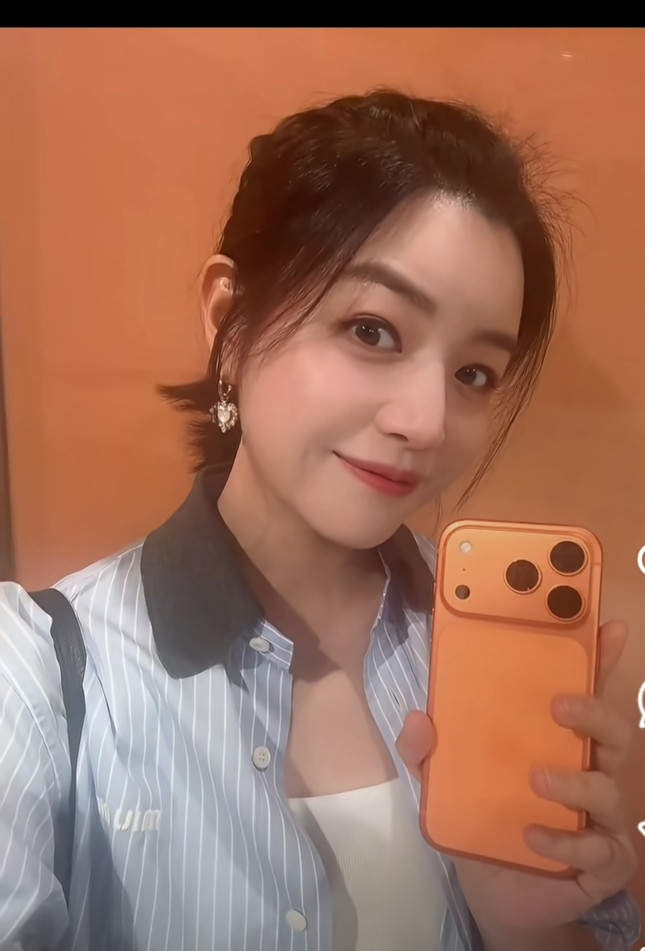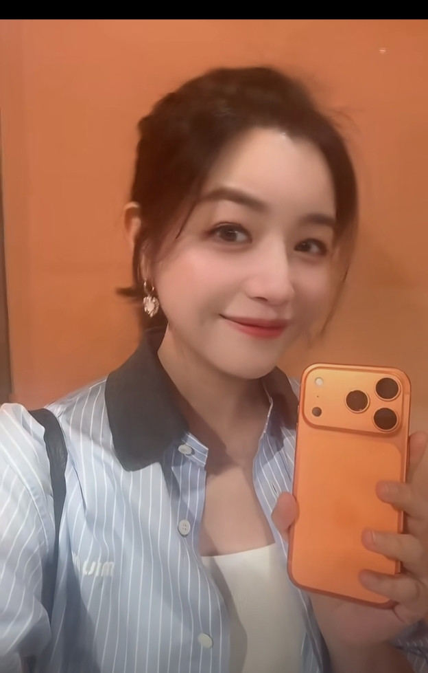 陈妍希编发配蓝白条纹衬衫, 穿搭清新又减龄, 自拍超有元气