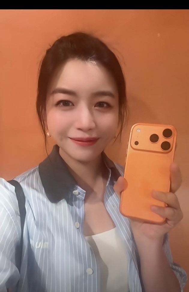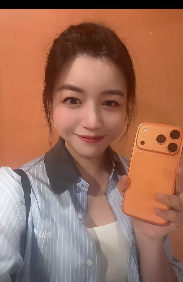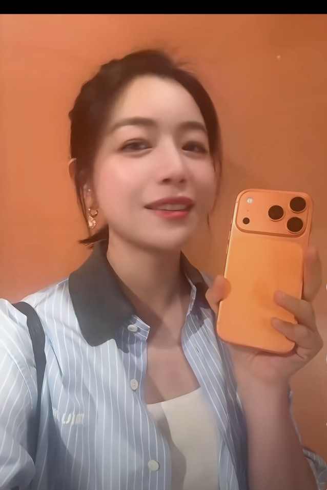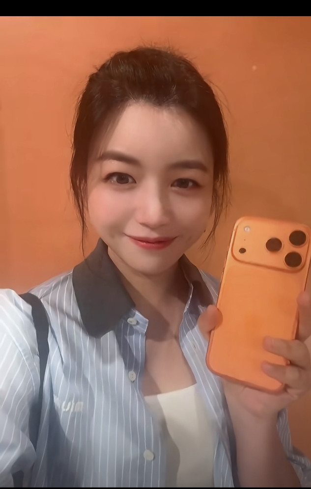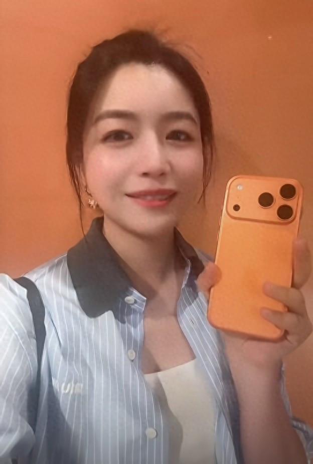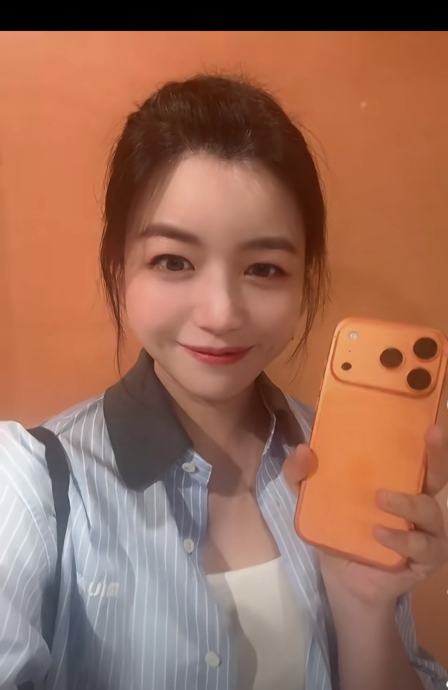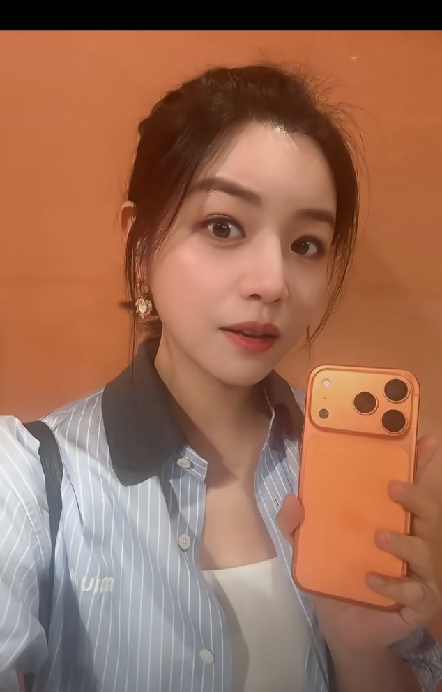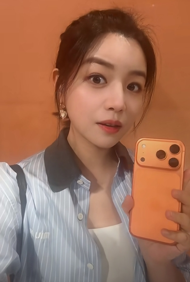 陈妍希编发配蓝白条纹衬衫, 穿搭清新又减龄, 自拍超有元气