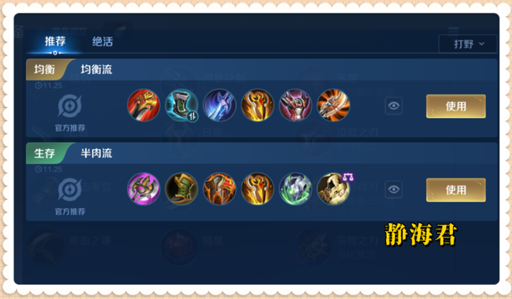 如果己方输出不是很足,推荐均衡流:贪婪之噬、抵抗之靴、纯净苍穹、怒龙剑盾、反伤刺甲、破魔刀。